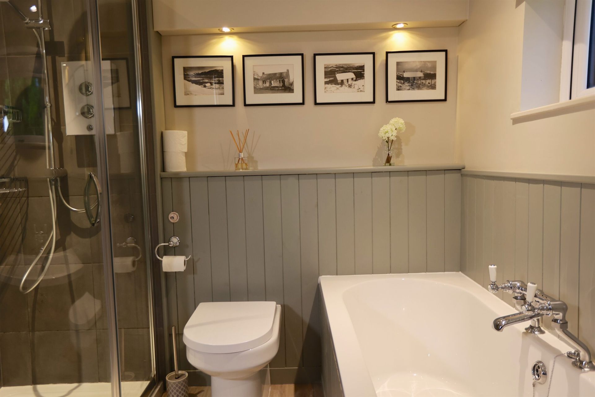 Modern electric radiators are situated throughout the cottage and the bathroom has underfloor heating.